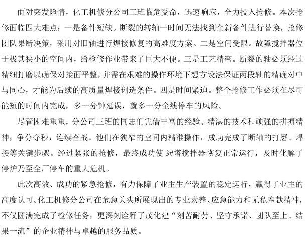 聞令而動(dòng)!化工機(jī)修分公司高效搶修守護(hù)業(yè)主生產(chǎn)生命線(xiàn)