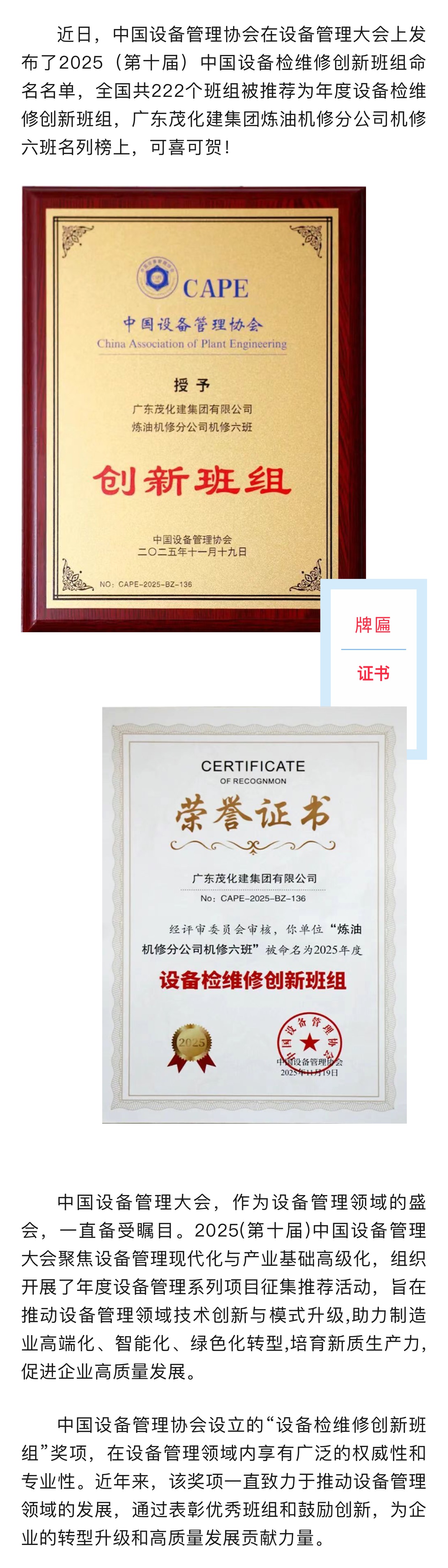 喜報 | 煉油機修六班榮獲全國”設(shè)備檢維修創(chuàng)新班組“稱號